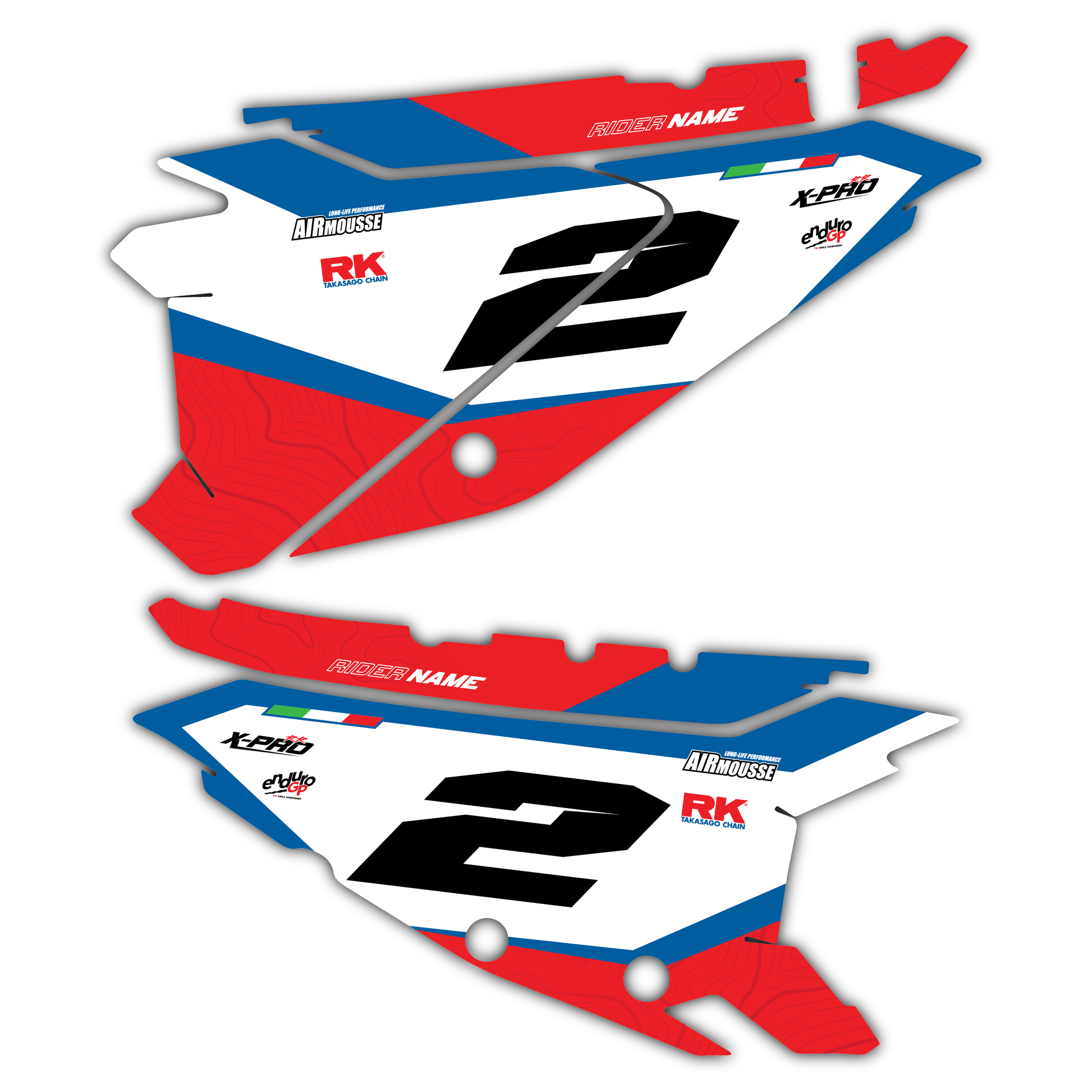 3. Customise - Add your rider name and number, and choose your favourite colours to make it your own. Want to swap out logos or include your own? No problem! Just leave us a note with any specific requests and upload any images or references that will help bring your vision to life.
